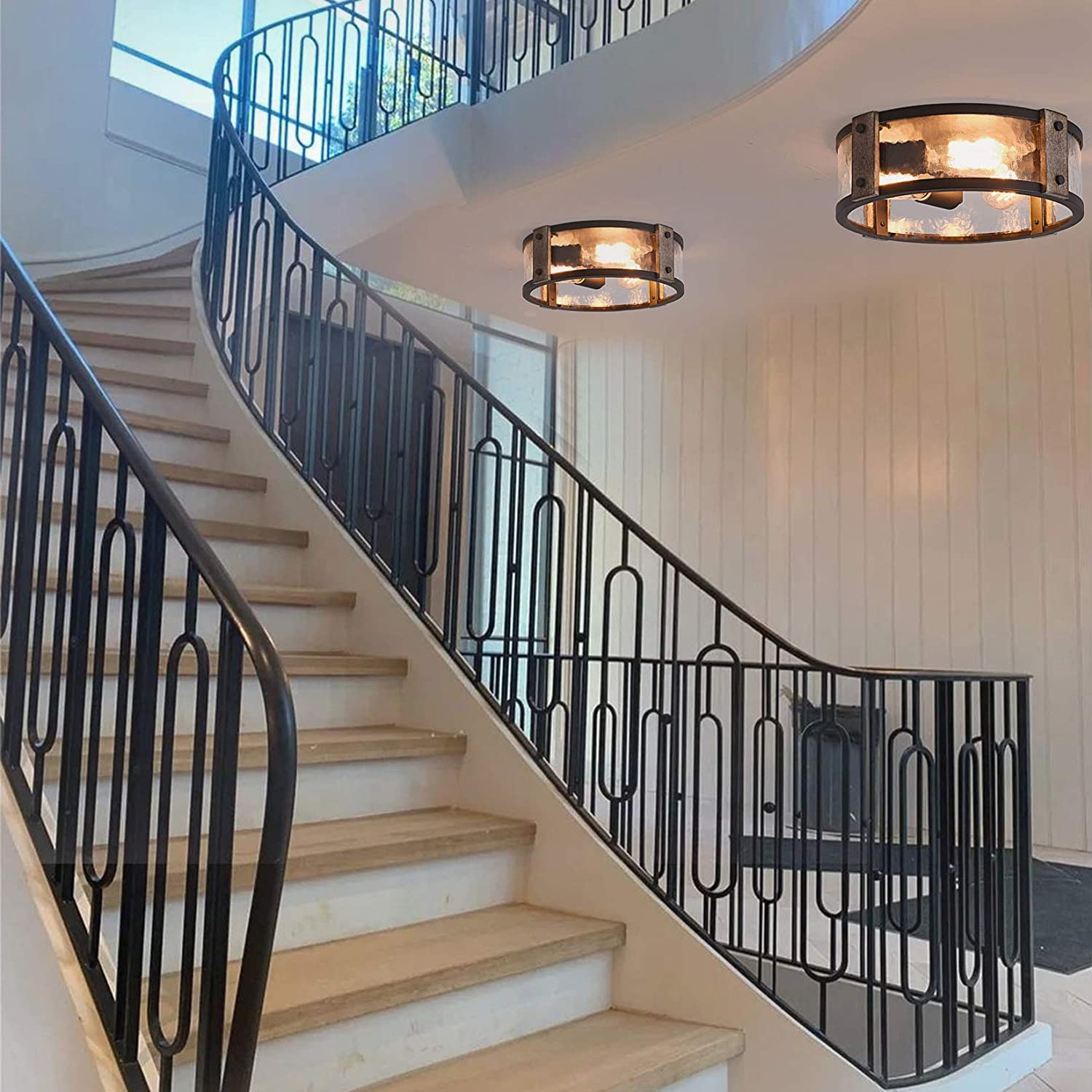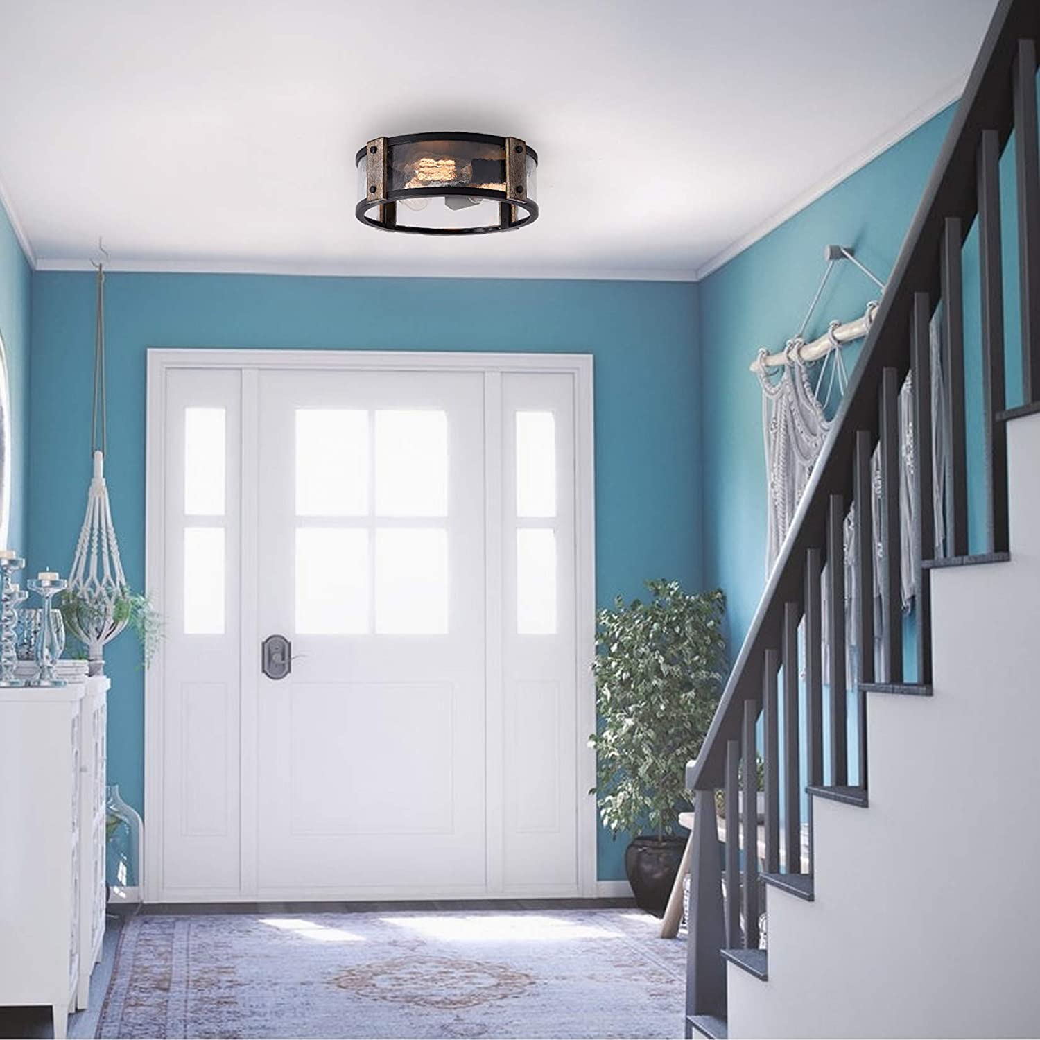 Our farmhouse lighting comes in a 13 x 4.3-inch size.3 E26 light bulbs are required.(Bulbs are sold separated.) The flush mount ceiling light comes with all instructions and accessories you need for a quick install. The ceiling light fixture needs to be hardwired.
