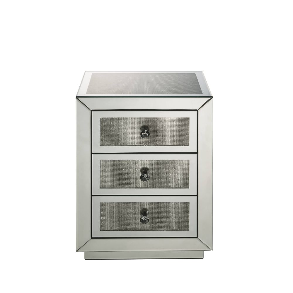 The Lavina occasional table brings glam styling to your home. The quality construction of this table features a combination of mirrored glass and composite wood, ensuring a design that endures. Three drawers with faux diamonds Inlay drawer fronts, It's just the right size for keeping small items, remotes, or reading materials at your fingertips.