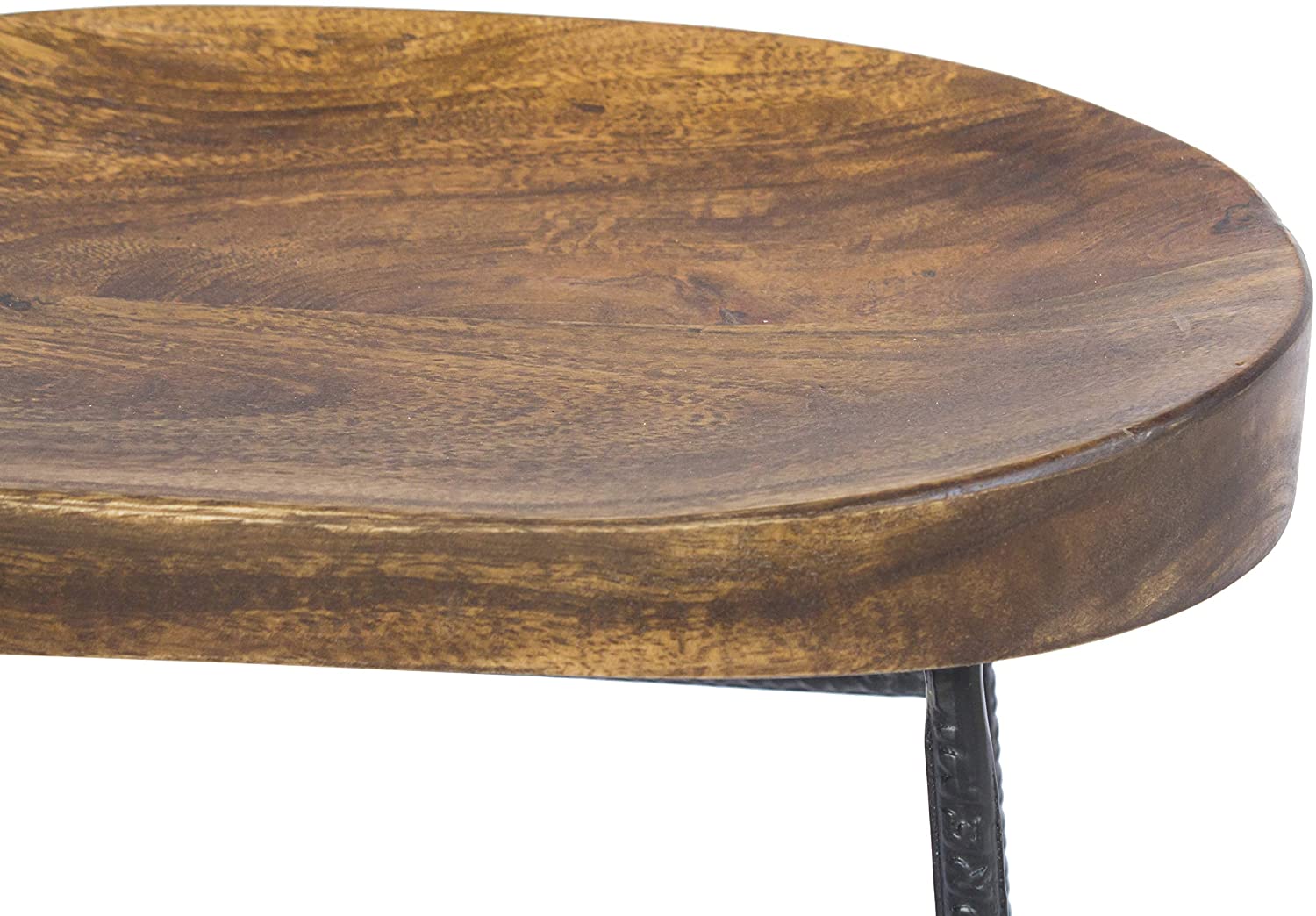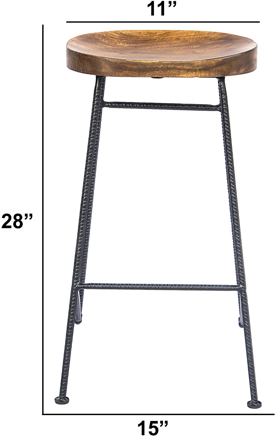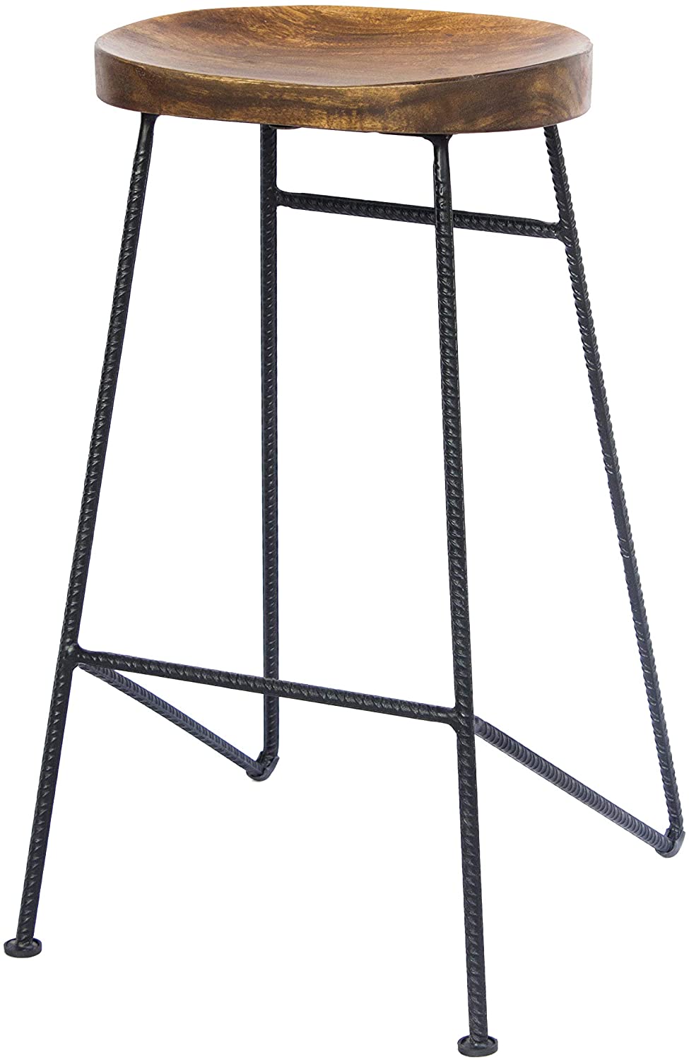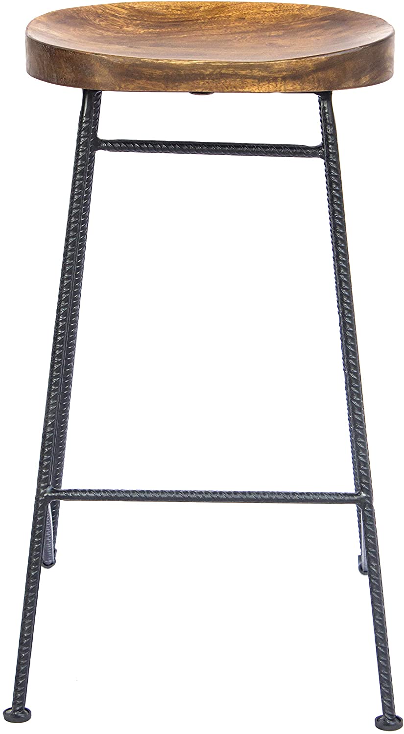 Mango Wood Saddle Seat Bar Stool with Iron Rod Legs