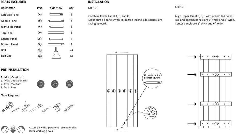 Door comes in unassembled panels, adult assembly is required. Door has pre-drilled bore holes for quick and easy installation.