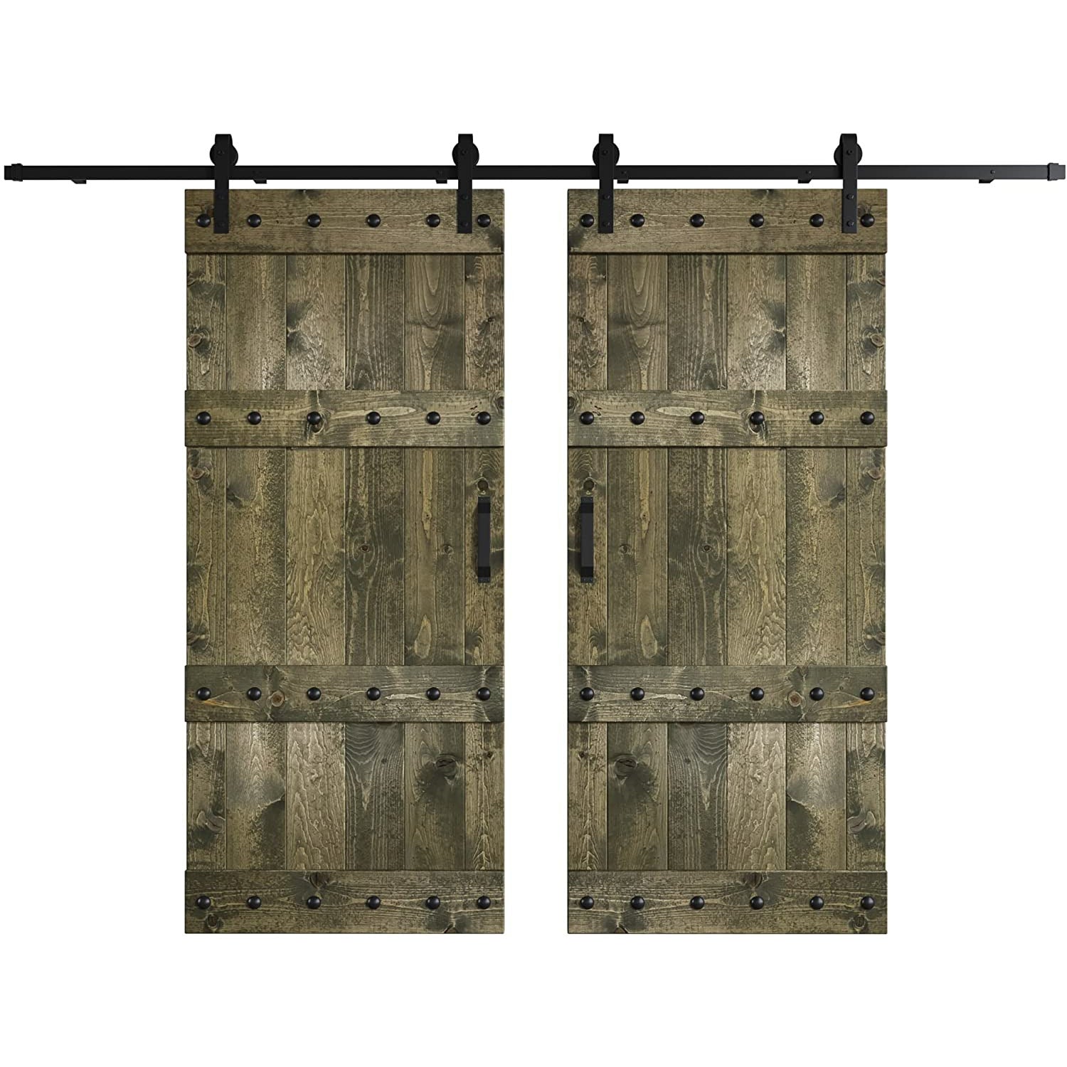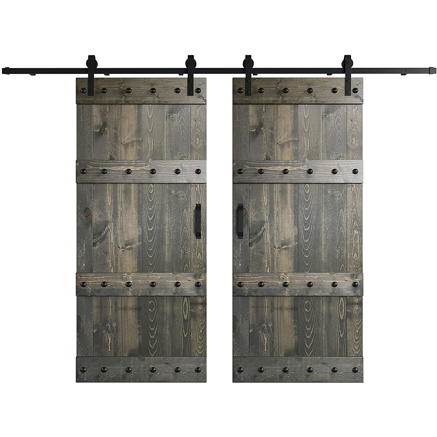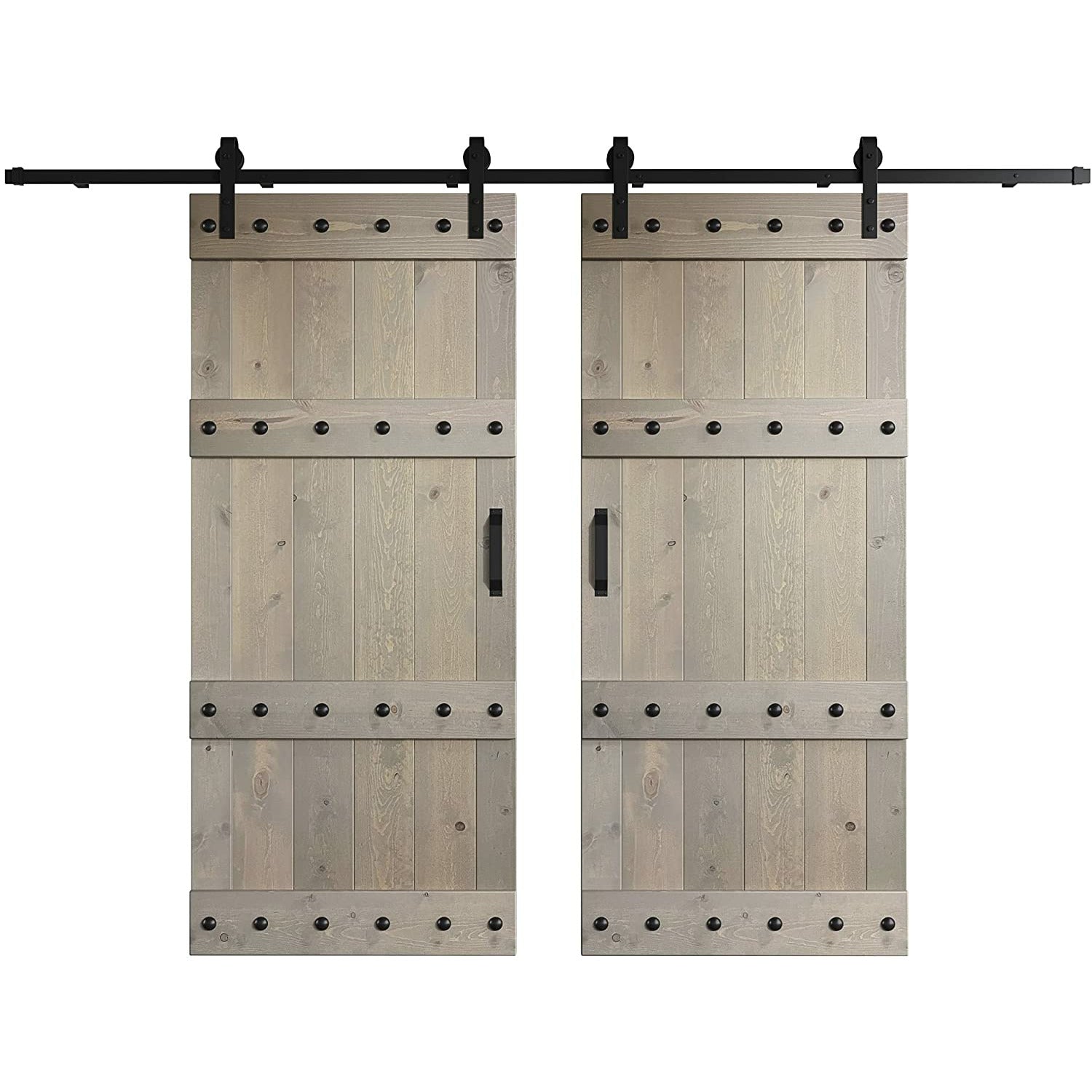 Door dimension: 36 in. wide x 84 in. tall x 1.5 in. Sliding door hardware kit max capacity: 200 lbs;Track length: 2*6 ft (144 in.);hardware color finish: Matte Black