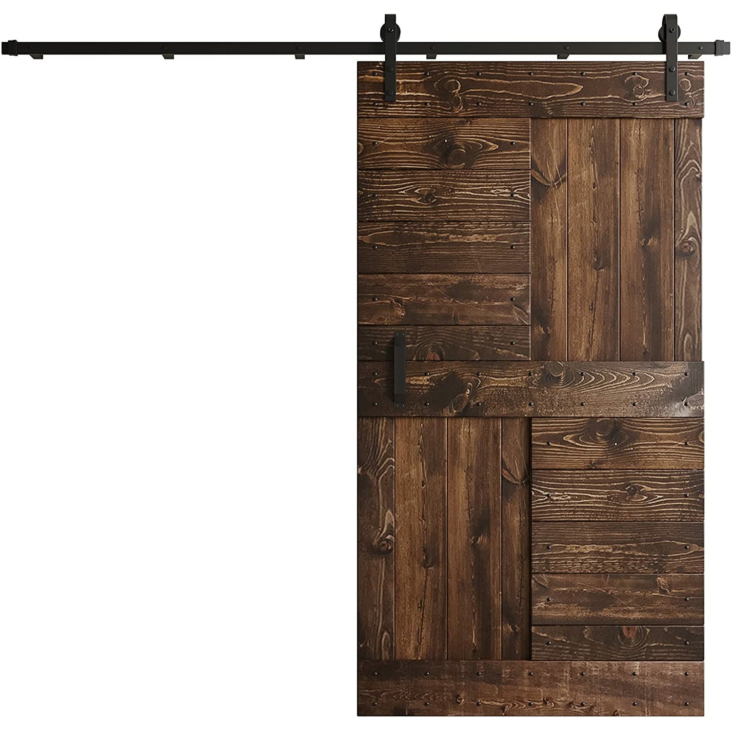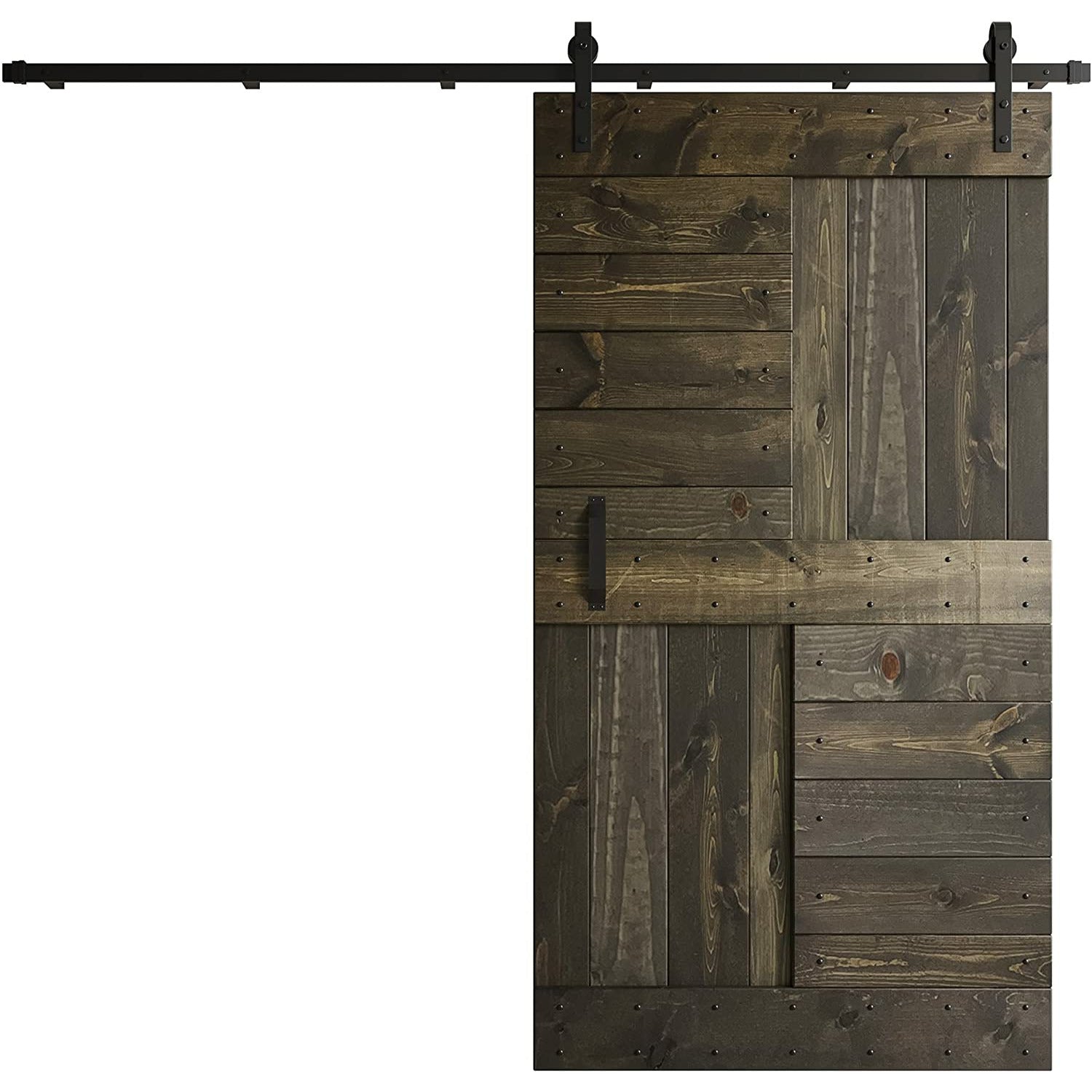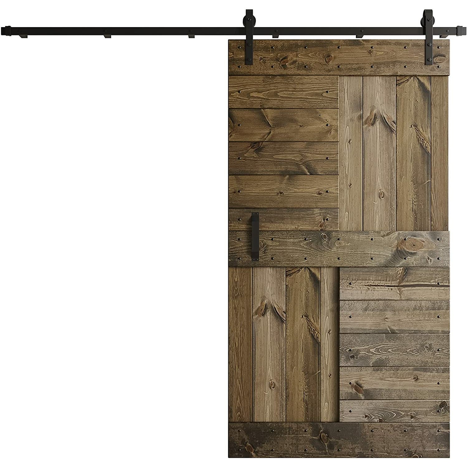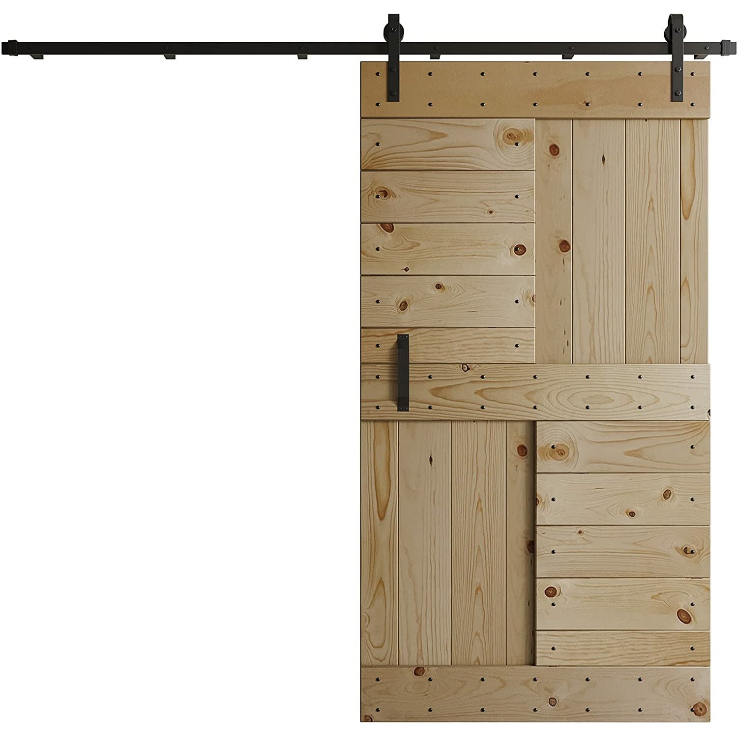 Package includes:1x Barn door (unassembled panels), 1x sliding hardware kit, 1x handle, and all necessary screws required for installation