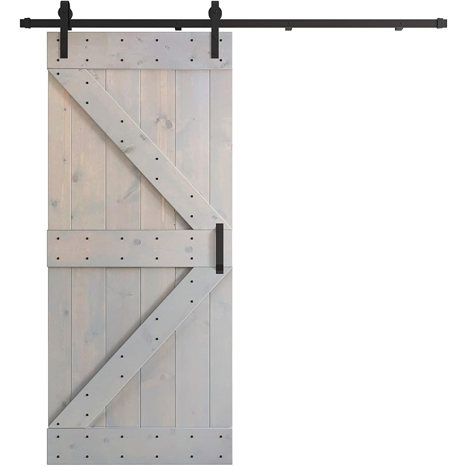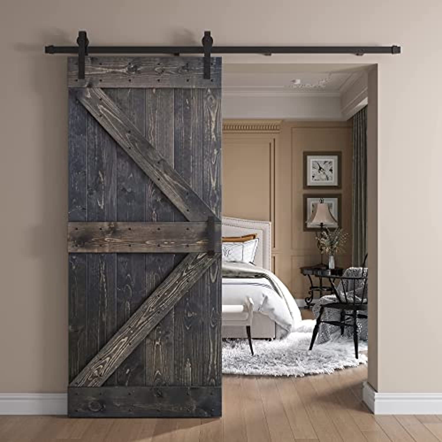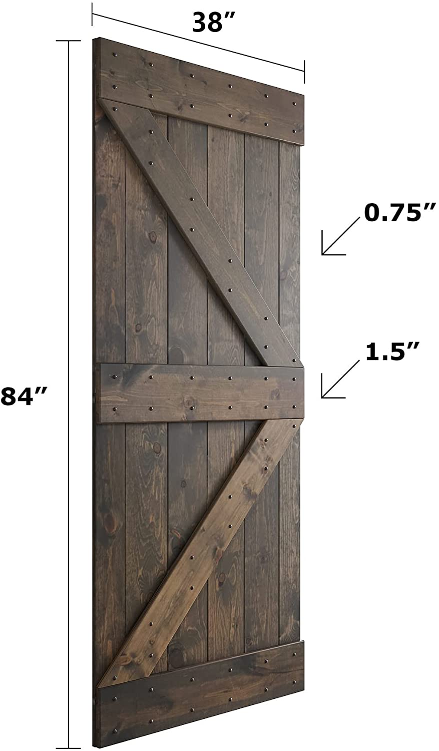 • Package includes:1x Barn door (unassembled panels), 1x sliding hardware kit, 1x handle, and all necessary screws required for installation.