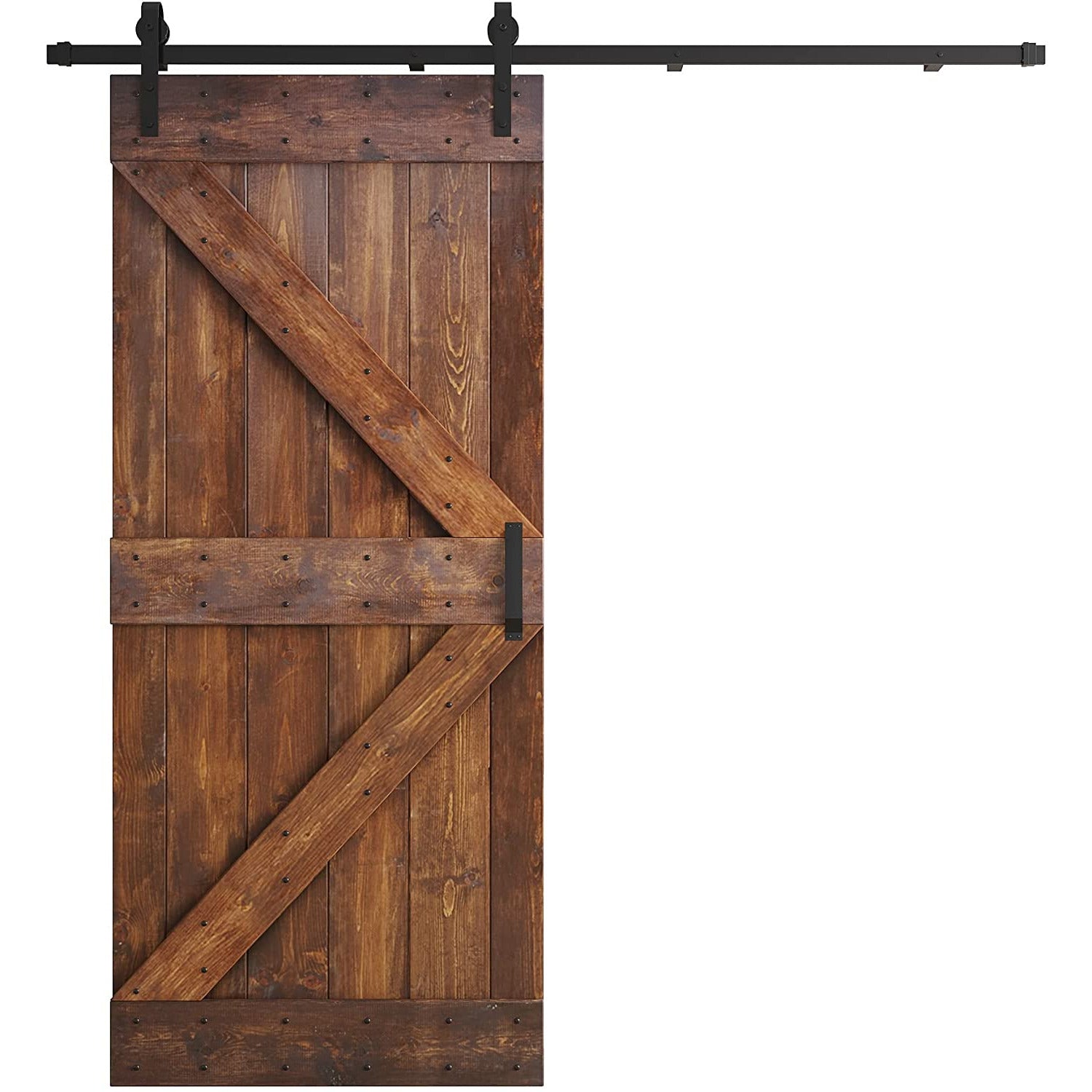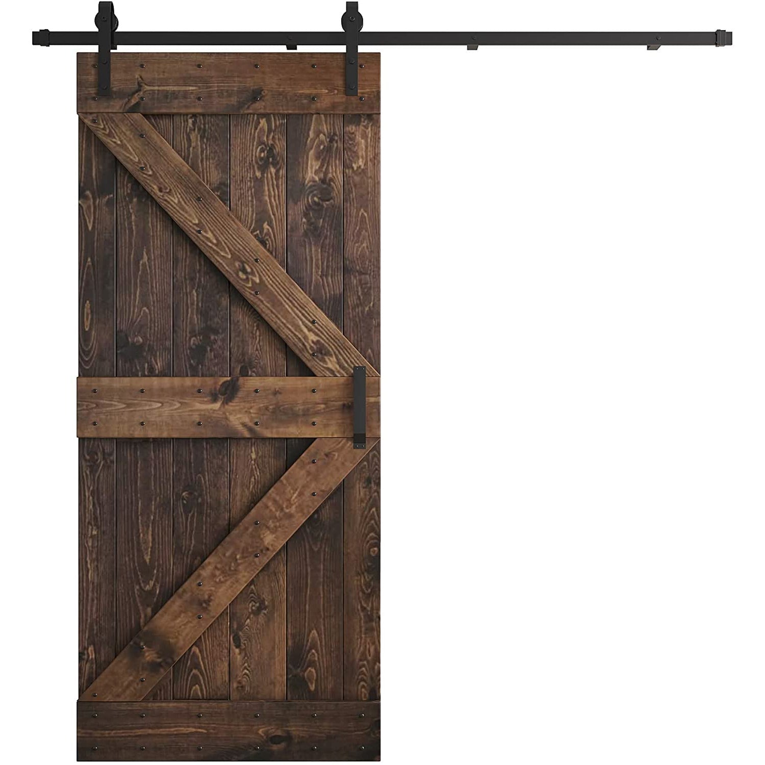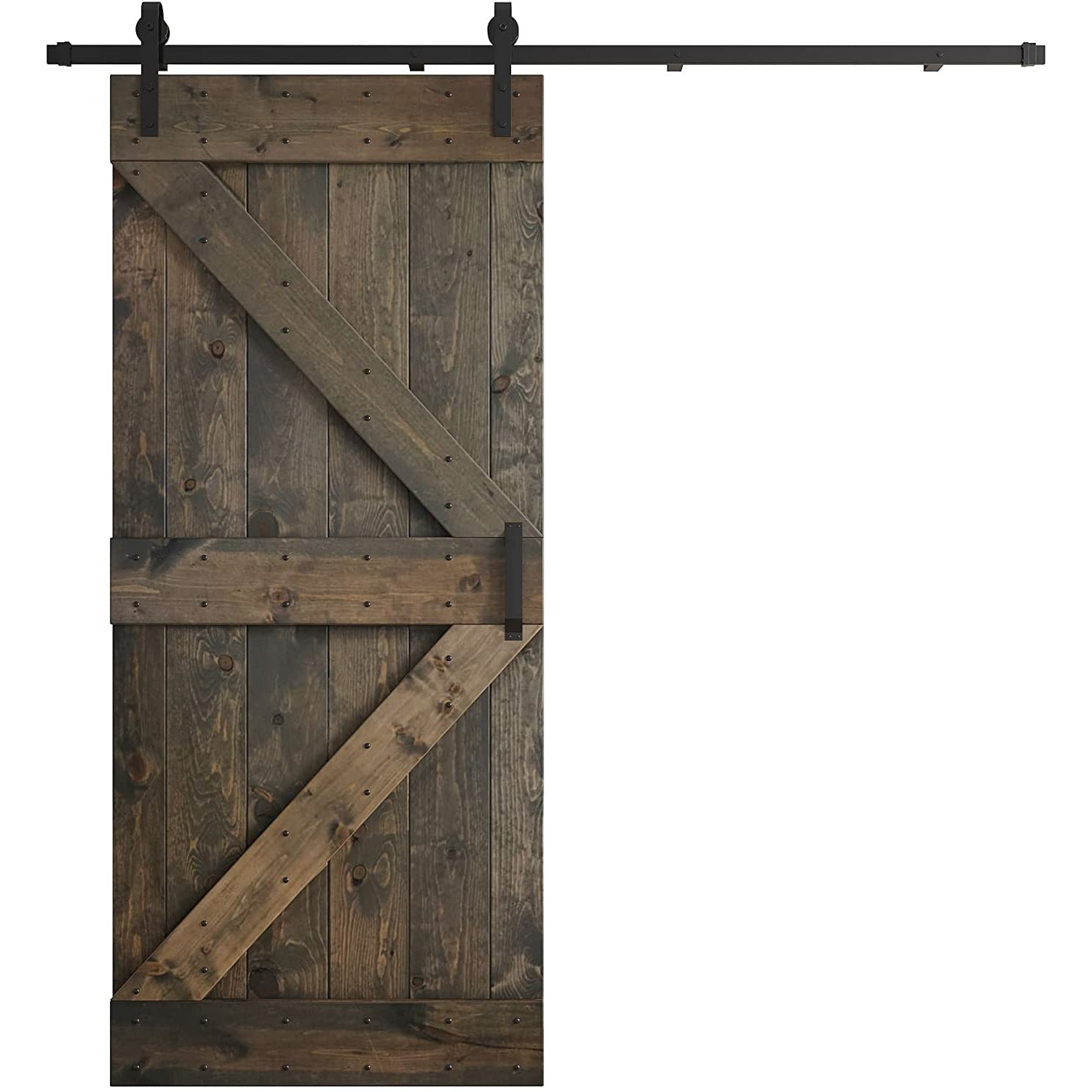 Dark Walnut Knotty Pine Wood Barn Door 36"x84"