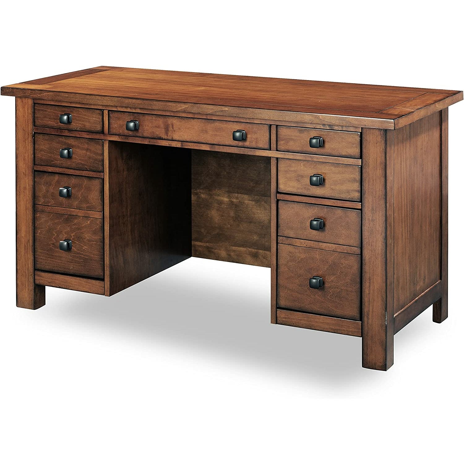 Executive Pedestal Desk, Solid Aged Maple Construction