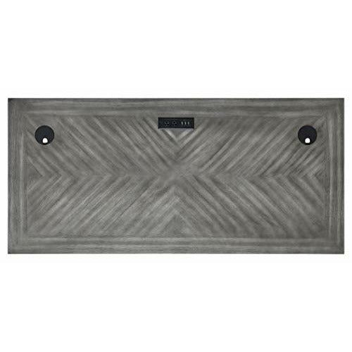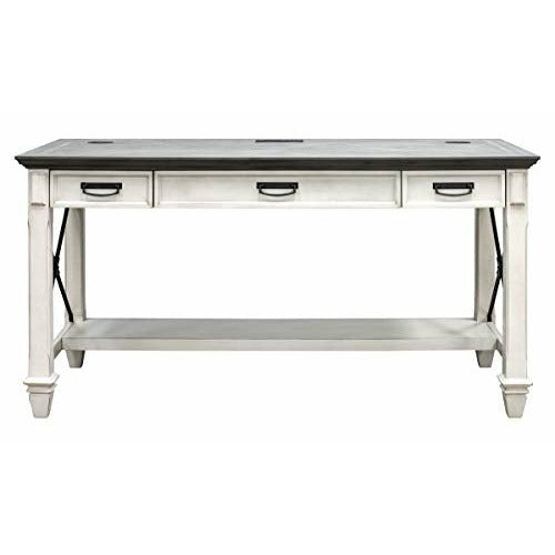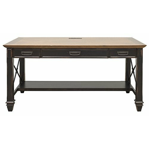 This writing desk combines bold lines with a weathered, vintage finish and classic style elements. The warm, hand applied two toned rubbed black finish gives it the relaxed feel of old world wood, while wire mesh details add a formal element. This desk will be right at home in either a classic formal setting or a relaxed, eclectic home. Desk includes a center drawer with a drop down front to hold a keyboard and wire management to control cables. It is fully Finished on all sides for placement anywhere in a room. Leg assembly required. Backed with a 5 year warranty.