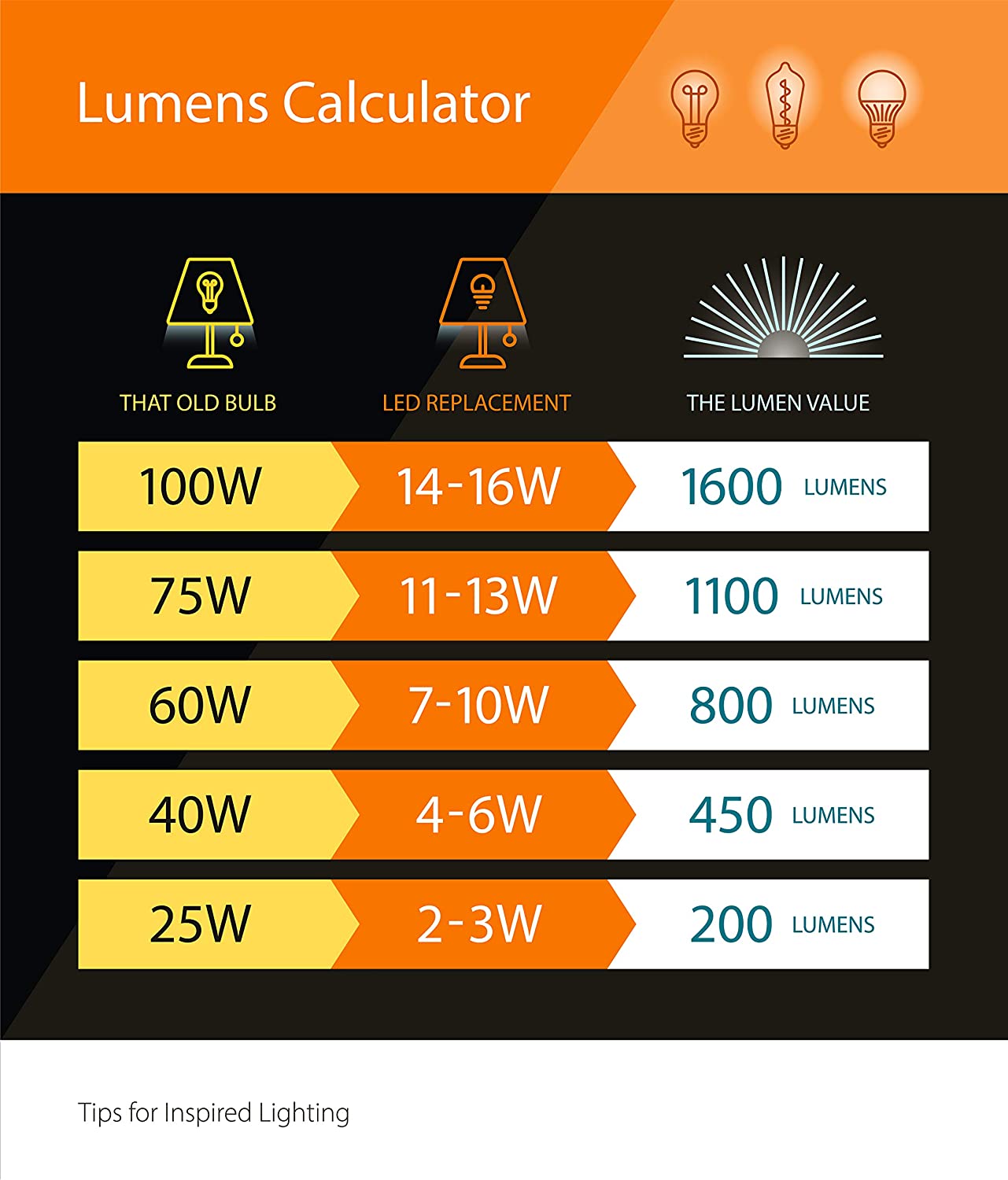 LED light kit includes a dimming feature and each bulb produces 500 lumens when set to its highest level; that's equivalent to approximately a 40 watt incandescent bulb