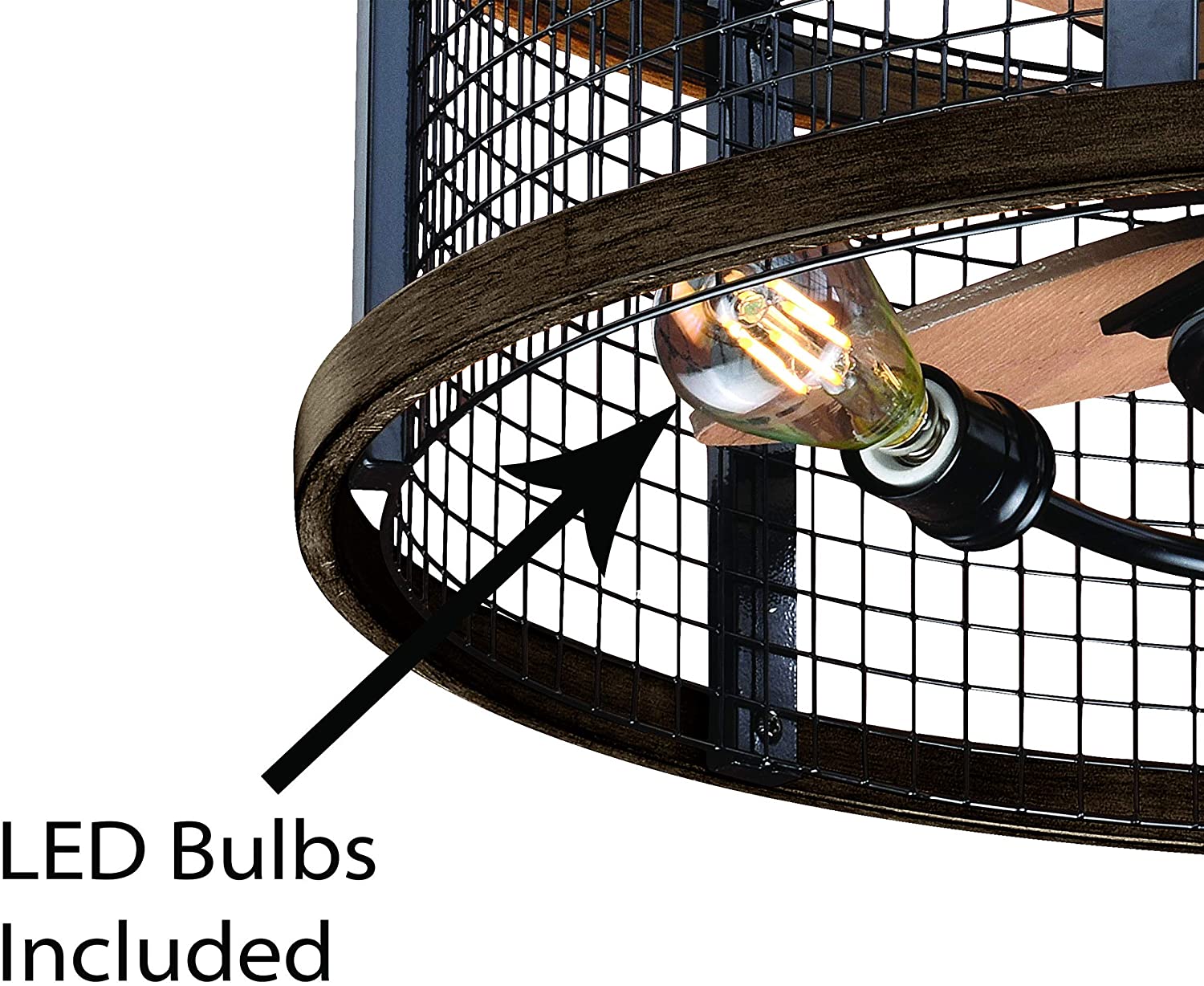 Bronze and Teak Industrial Farmhouse Caged Ceiling Fan with LED Light Kit and Remote