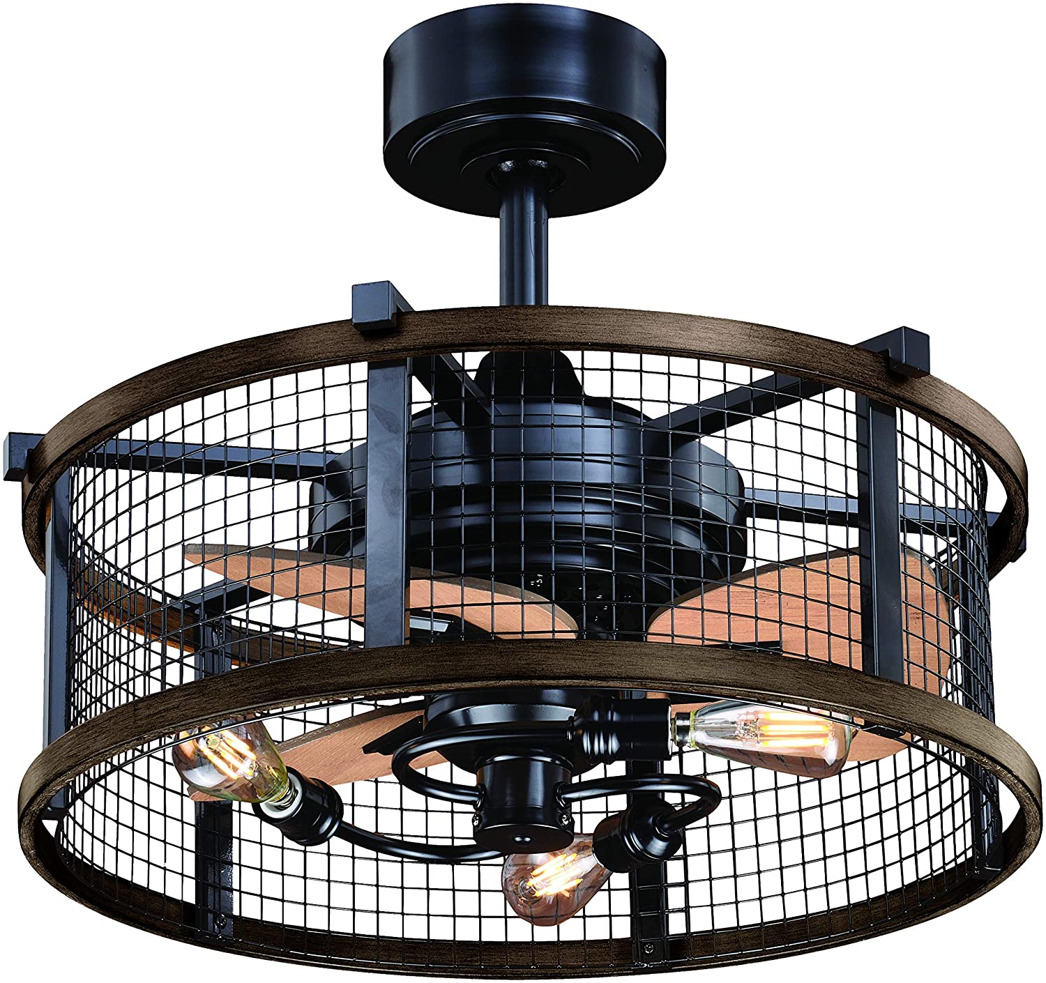 This drum style fan called Humboldt offers 360 degrees of loft inspired beauty and comfort. Oil rubbed bronze finish with burnished teak wood details and blades handsomely accent the metal mesh cage. This beautiful yet functional design is the perfect addition whether your style is edgy urban loft or a laid-back modern country. This fan is compatible with sloped ceilings and includes a 6 inch down rod (longer down rods sold separately). Remote control included for added convenience.