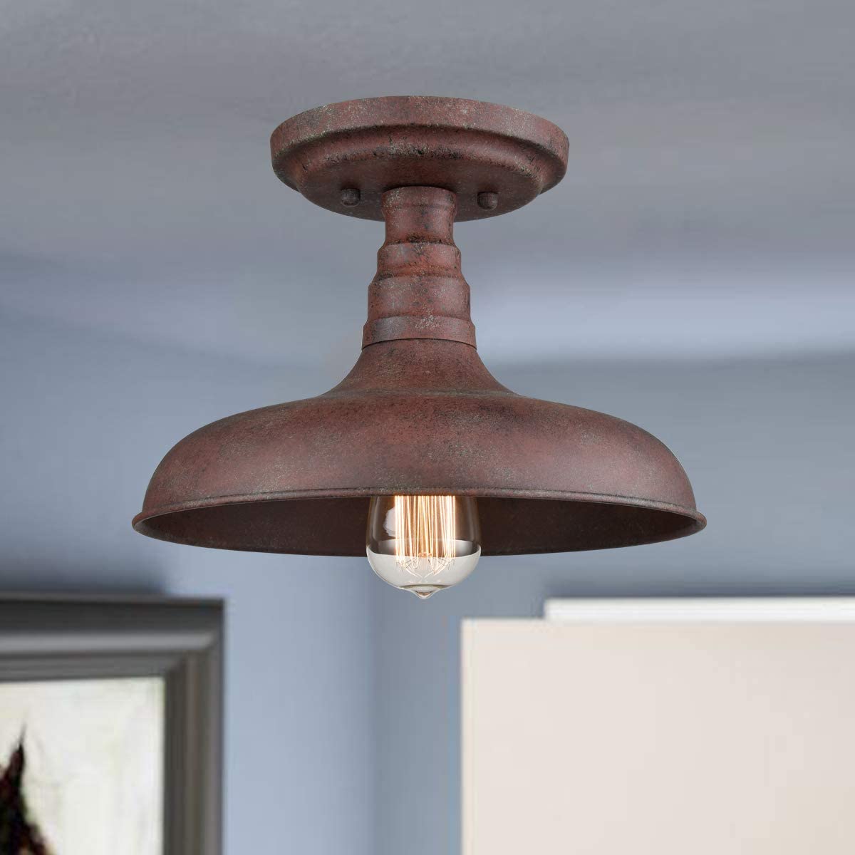 DANSEER Lighting Vintage Retro Rustic Metal Barn Semi Flush Mount Ceiling Light Rust Finish