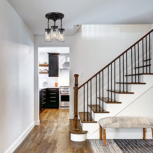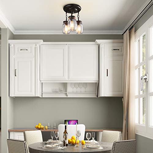 Farmhouse Mason Jar Glass Pendant Flush Mount Ceiling Light Fixture